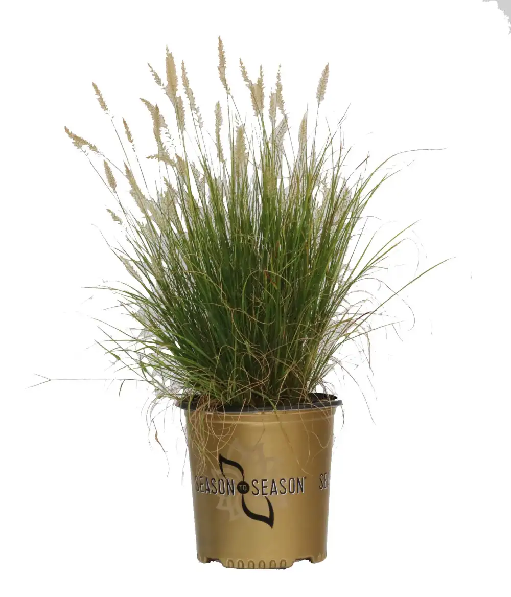 Perfect as a background plant, border, statement plant, for erosion control or as an outdoor container specimen. Showy, silvery-white bottle-brush flower plumes add movement to the garden in late summer. Dried plumes and golden leaves add fall and winter interest. Low maintenance and drought tolerant. Adds movement to the garden in late summer. Dried plumes and golden leaves add fall and winter interest.